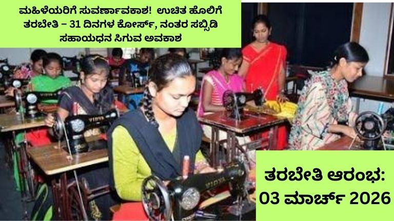🔥 ಮಹಿಳೆಯರಿಗೆ ಸುವರ್ಣಾವಕಾಶ! ಉಚಿತ ಹೊಲಿಗೆ ತರಬೇತಿ – 31 ದಿನಗಳ ಕೋರ್ಸ್, ನಂತರ ಸಬ್ಸಿಡಿ ಸಹಾಯಧನ ಸಿಗುವ ಅವಕಾಶ